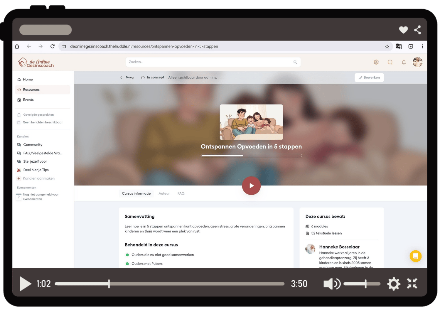 Ontspannen Opvoeden is speciaal ontwikkeld voor ouders zoals jij, die meer gezelligheid en liefde willen, zonder jezelf te verliezen in de dagelijks sleur . In overzichtelijke modules leer je wat werkt, waarom het werkt en hoe je het direct toepast in jouw gezin. Praktisch en bewezen effectief, de cursus behandelt structuur, verbindende communicatie en grenzen stellen zonder te schreeuwen. Met korte videolessen, werkbladen en oefeningen bouw je aan rustgevende routines, minder strijd en vooral meer verbinding.